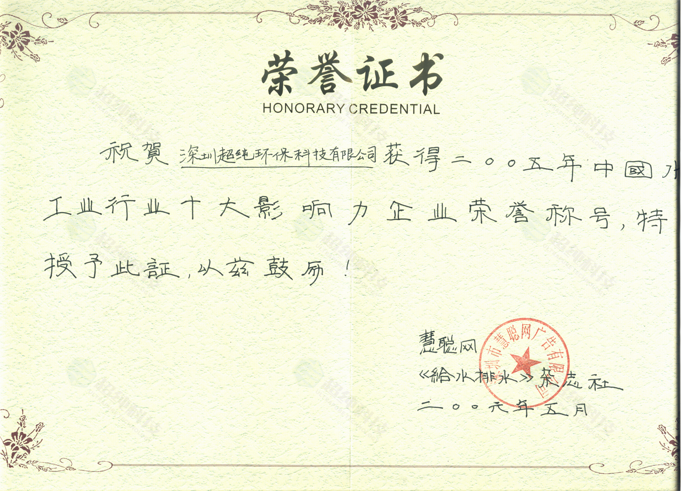 工业行业十大影响力企业荣誉证书