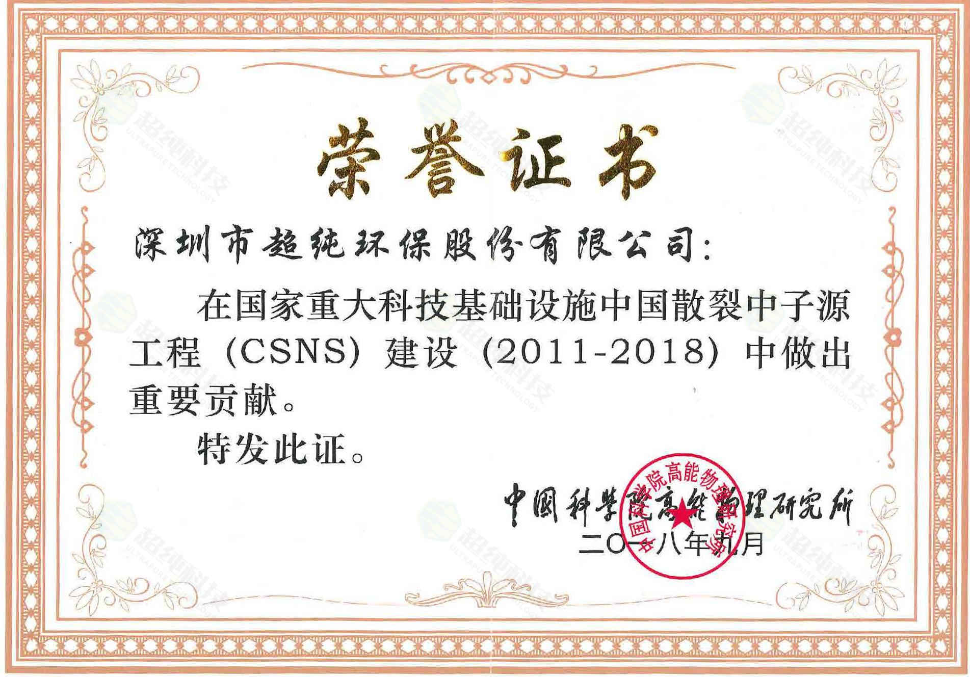 中国科学院高能物理研究所荣誉证书