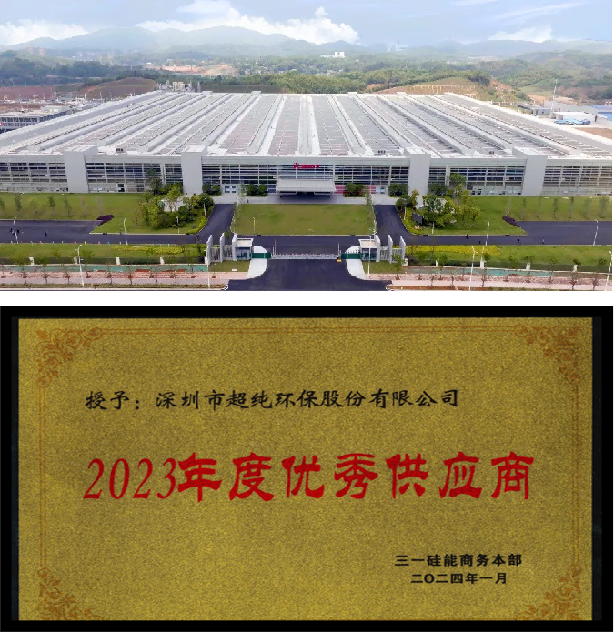 2023年,我司承揽了三一硅能(株洲)有限公司的今年会系统项目,通过集成预处理、反渗透(RO)、电去离子(EDI)及PMB等核心工艺技术,有效地满足了其生产线对于今年会的高标准要求。由于在项目实施中表现出色,于2024年1月被授予2023年度优秀供应商荣誉。